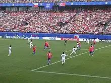 On 19 July 2007, there was a clash between Chilean players and police officers following the semi-final match between Chile and Argentina. The Chilean players were angry with referee, Wolfgang Stark, claiming that he had "lost control of the match early on"[11] and complained about receiving seven yellow cards and two red cards,[12] with a total of 53 fouls committed.[13] After the game, Stark and his colleagues were surrounded by Chilean players, and Toronto Police Service members had to intervene to restrain them. Stark was escorted off the pitch and into the dressing room tunnel by the police, due to fears that he would be attacked by the crowd or Chilean players.[14] Afterwards, there was a brawl between several players and delegates of the Chilean team and police outside Toronto's National Soccer Stadium.[15]