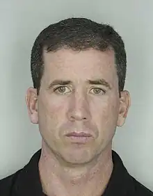 After the initial reports, Donaghy stayed at his home, before moving to a secure location to avoid the media scrutiny.[21] He surrendered on August 15, 2007, and pleaded guilty to two felony charges of conspiracy.[22] He told judges that he had used coded language to tip others about players' physical condition and player/referee relations, and he specifically admitted to passing information about two games during the 2006–07 season. In total, Donaghy claimed he received $30,000 to pass inside information to the bookies.[23] Donaghy's co-conspirators disputed his accounting, with his best friend and fellow government cooperator Tommy Martino claiming Donaghy was paid $120,000 between December 2006 and April 2007 and pro gambler Jimmy Battista claiming he paid Donaghy between $201,000 and $209,000.[24] Donaghy also claimed that he had a severe gambling addiction, and was on medication to address it.[25] He was released on a $250,000 bond.[22]