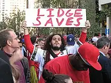The Phillies opened August by taking two of three from the Cardinals, though they followed that by dropping a series to the Marlins.[45] On August 7, the Phillies acquired left-handed reliever Scott Eyre from the Cubs.[46] After taking two of three from the Pittsburgh Pirates, the Phillies went west for their first trip to Dodger Stadium, dropping three consecutive games to the Los Angeles Dodgers. The first game saw the team sacrifice a 7-run lead that they could not overcome, and the second two of the series were both blown by the bullpen. The Dodgers' sweep in Los Angeles was completed as the Phillies dropped the last game of the series, leaving them out of first place in the division. However, the Phillies struck back, taking two of three from both the Padres and the Nationals, and completing a revenge sweep of the Dodgers at Citizens Bank Park. The following evening, the Phillies saw starter Jamie Moyer give up seven runs over the first three innings of their game against the Mets. However, the offense made up that deficit by scoring the tying run in the ninth; catcher Chris Coste capped the comeback by going four-for-four coming off of the bench and driving in the winning run with a bases-loaded single to deep center in the bottom of the 13th inning.[47] They ended up splitting the short series with the Mets and the next four-game series against the Cubs to close out the "dog days" of summer.