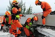Rescue efforts began in the immediate aftermath of the earthquake, with able-bodied survivors extricating the living and the dead from the rubble of the many buildings that had collapsed.[154] Treatment of the injured was hampered by the lack of hospital and morgue facilities: the Argentine military field hospital, which had been serving MINUSTAH, was the only one available until 13 January.[155] Rescue work intensified only slightly with the arrival of doctors, police officers, military personnel and firefighters from various countries two days after the earthquake.[156]