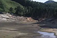 This megathrust earthquake was a recurrence of the mechanism of the earlier 869 Sanriku earthquake, which has been estimated as having a magnitude of at least 8.4 Mw, which also created a large tsunami that inundated the Sendai plain.[37][72][73] Three tsunami deposits have been identified within the Holocene sequence of the plain, all formed within the last 3,000 years, suggesting an 800 to 1,100 year recurrence interval for large tsunamigenic earthquakes. In 2001 it was reckoned that there was a high likelihood of a large tsunami hitting the Sendai plain as more than 1,100 years had then elapsed.[74] In 2007, the probability of an earthquake with a magnitude of Mw 8.1–8.3 was estimated as 99% within the following 30 years.[75]