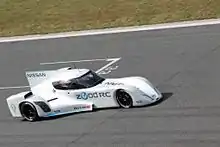 Nissan unveiled the car, known as the ZEOD RC, during the 2013 24 Hours of Le Mans weekend. The ZEOD RC was designed by Ben Bowlby, who created the 2012 Garage 56 entry DeltaWing with backing from Nissan. The ZEOD RC utilized a hybrid electric drivetrain with lithium ion battery packs in a chassis similar in design to the DeltaWing.[12] The car featured a turbocharged three-cylinder internal combustion engine and two electric drive motors. Nissan planned to attempt a full lap of the Circuit de la Sarthe under all-electric power,[13] a goal achieved during the pre-race warm-up session.[14]