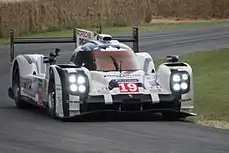 During the sixth hour of the race Gary Hirsch lost power in his Greaves Gibson-Nissan through the Esses and came to a halt; the car would later be abandoned after Hirsch was unable to repair a broken battery terminal.[44] The No. 71 Ferrari was forced to the garage to fix starter motor problems, bowing out of its battle with Corvette and Aston Martin in LMGTE Pro.[44] As dusk settled on the circuit, the No. 18 Porsche of Dumas braked too late for Mulsanne Corner and hit a tyre barrier. The car was able to return to the pit lane, only requiring new front bodywork, but the car fell to fifth position. Not long after Paul-Loup Chatin crashed his Signatech Alpine at Mulsanne Corner, bringing the safety cars out for the third time of the race.[45] During this slow period Rob Bell pulled the No. 97 Aston Martin off course and onto the inside run-off area at the Mulsanne Straight and retired.[46] When racing resumed, Hülkenberg was able to attack the leaders, first overtaking Webber's Porsche around the outside on the opening lap then passing Rast when he made a scheduled pit stop. Webber was later given a one-minute stop and go penalty for passing in a yellow flag zone, dropping him to fourth place.[46] Nissan lost one of their three LMP1 entries when Tsugio Matsuda's No. 21 car stopped at Arnage with a suspension failure that caused its front-left wheel to detach from the vehicle and was unable to continue.[47][48] The No. 22 Nissan also suffered a setback when it hit a loose wheel out on the Mulsanne Straight at 299 km/h (186 mph) and required a lengthy repair to its front-end.[48]