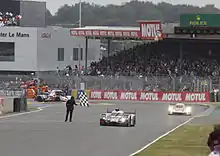 Unhindered in the final hours of the race, Hülkenberg took the chequered flag for the No. 19 Porsche, a lap ahead of Hartley's No. 17 Porsche.[66] Audi, in only their third defeat at Le Mans since 2000,[67] were a further lap behind in third place with the No. 7 car. Toyota, unable to match the pace of Audi and Porsche, were twelve laps behind for a seventh-place finish, while debutants Nissan successfully finished the race with one of their cars, although it failed to complete enough laps for classification.[66] Hülkenberg became the first active Formula One driver to win Le Mans since Johnny Herbert and Bertrand Gachot in 1991 and the first rookie to clinch overall victory since Laurent Aïello in 1998.[68] Tandy became the 32nd British driver to win the event as well as the first Englishman since Guy Smith in 2003,[69] and co-driver Earl Bamber was the third New Zealander after Bruce McLaren and Chris Amon to achieve the overall win.[70] It was also Porsche's seventeenth overall victory in the 24-hour race.[68] KCMG, unchallenged since the early hours of the race, were victorious in the LMP2 class, while Jota Sport was able to take second place from G-Drive Racing in the final hours.[65] Corvette Racing held their five lap lead in LMGTE Pro, earning Gavin his fifth class victory,[71] while AF Corse completed the class podium with the No. 71 ahead of No. 51. Following the loss of the No. 98 Aston Martin in the final hour, actor Patrick Dempsey's team moved into second place behind the winning SMP Ferrari, while Scuderia Corsa, in their first appearance at Le Mans, finished third.[71] There were 28 outright lead changes during the race; four cars reached the front of the field. The No. 19 Porsche led seven times for a total of 243 laps, more than any other car.[64]