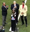 Bob St. Clair died on April 20 at age 84. St. Clair had an eleven-year career as an offensive tackle for the San Francisco 49ers in the 1950s and 1960s. He played in the Pro Bowl five times and was named to the 1950s All-Decade Team. St. Clair was the mayor of Daly City, California from 1958 through 1964. St. Clair was enshrined in the Pro Football Hall of Fame in 1990.[68][69][70]
