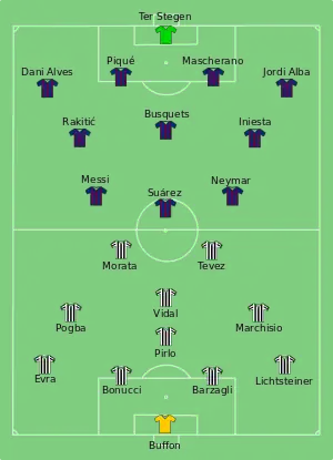 54. "Juventus v Barcelona final: team news". UEFA.com. Union of European Football Associations. 4 June 2015. Archived from the original on 21 June 2015. Retrieved 5 June 2015.