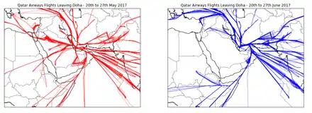 - "Flight Ban for Qatar Flights in UAE, Saudi Arabia, Bahrain, and Egypt". Flightradar24. 5 June 2017. Archived from the original on 27 November 2017. Retrieved 5 June 2017.
