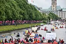 During the G20 week a large variety of over 25 registered protest actions and marches were planned to take place in the city of Hamburg.[52][53] They included an alternative Global Solidarity Summit from 5 to 6 July[54] and a peaceful dance-protest-march Lieber tanz ich als g20 with between 11,000 and 20,000 people attending on 5 July.[55]
