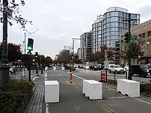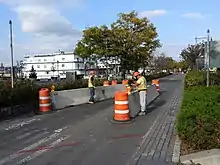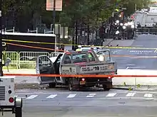 After the attack, several media sources wrote about how easy it was to drive down Hudson River Park's bike lane, either by accident or on purpose.[75][76] Transportation Alternatives had pushed for safety bollards ever since two vehicular incidents resulting in fatalities had occurred on the bike path in 2006, but the city ignored safety concerns and made only aesthetic fixes to the path.[77] City and state officials also started working on a way to improve the bike lane's safety measures,[78][77][76] and two days after the attack, the city started placing temporary concrete barriers on the path. The temporary barriers were installed by November 3 and were replaced with permanent barriers in 2019.[79]