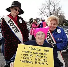 ![]() Demonstrators at the Women's March on Washington in Washington, D.C. | |