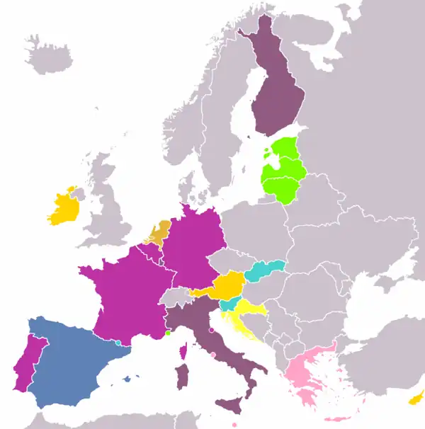 19 members of the eurozone and four microstates have independently issued €2 commemorative coins, with Greece being the first country to do so.