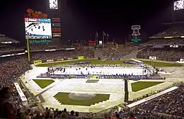 Although technically not an outdoor game, the Syracuse Crunch defeated the Utica Comets 2–1 on November 22, 2014 at the Carrier Dome, normally a college football stadium.