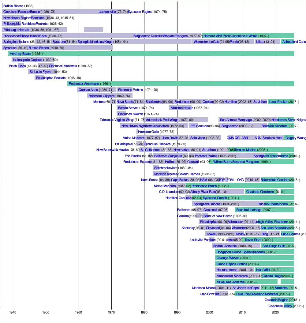 - Franchise has moved in the past; see AHL membership timeline below or the team's main article for further information.