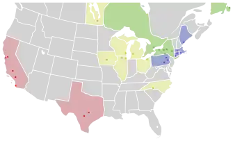 In January 2015, the AHL announced the relocation of five existing AHL franchises—Adirondack, Manchester, Norfolk, Oklahoma City, and Worcester—to California as the basis for a new "Pacific Division" becoming Stockton, Ontario, San Diego, Bakersfield, and San Jose respectively.[7] The relocated teams were all affiliated and owned or purchased by teams in the NHL's Pacific Division. The franchise movements continued with two more relocations involving Canadian teams[8] with the St. John's IceCaps going back to Winnipeg as the Manitoba Moose and the Hamilton Bulldogs becoming another iteration of the IceCaps to fulfill the arena contract in St. John's.