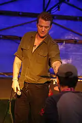 The album draws inspiration from various musical genres, including indie rock,[8] psychedelic rock, blues rock, hard rock, heavy metal, desert rock, R&B, soul, and hip hop.[9][10][11][12][13][14] In the first interview of the AM press campaign, Alex Turner told journalist Matt Wilkinson of NME that the album sounded "like a Dr. Dre beat, but we've given it an Ike Turner bowl-cut and sent it galloping across the desert on a Stratocaster", adding that it "sounds less like four lads playing in a room this time. Essentially, that's what it is, but if you can find a way to manipulate the instruments or the sounds to the point where it sounds a bit like a hip-hop beat that'd be boss in your car, then I think there's something quite cool about that."[15] Turner also cited Outkast, Aaliyah, Black Sabbath, Captain Beyond and The Groundhogs as influences.[16][17][18] Guitarist Jamie Cook also cited The Rise and Fall of Ziggy Stardust and the Spiders from Mars as an inspiration for the album, saying that it was one of the only albums they listened to while recording AM.[19]
