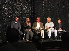 As early as 2003, Sorkin was writing a spec script about inventor Philo Farnsworth; he was approached by producer Fred Zollo in the 1990s about adapting Elma Farnsworth's memoir into a biographical film.[13][79] The following year, he completed the film screenplay, The Farnsworth Invention, which was acquired by New Line Cinema with Schlamme as director. The story is about the patent battle between Farnsworth and RCA tycoon David Sarnoff for the technology that allowed the first television transmissions in the United States.[80] No additional details were released about the film. Shortly, Sorkin was contacted by Jocelyn Clarke of the Abbey Theatre in Dublin, requesting he write a play for them, a commission which he accepted.[81] Sorkin decided to rewrite The Farnsworth Invention as a play.[13][81] He delivered a first draft of the play to the Abbey Theatre in early 2005, and a production was planned for 2007 with La Jolla Playhouse deciding to stage a workshop production of the play in collaboration with the Abbey Theatre. In 2006, Abbey Theatre's new management quit involvement with The Farnsworth Invention.[81] Despite this, La Jolla Playhouse carried on with Steven Spielberg serving as a producer.[82] The production opened under La Jolla's signature Page To Stage program which allowed Sorkin and director Des McAnuff to develop the play from show-to-show according to audience reactions and feedback; the play ran from February 20, 2007, through March 25, 2007.[83][84] A Broadway production followed soon after, beginning in previews, and opening on November 14, 2007; however, the play was delayed by the 2007 Broadway stagehand strike.[85][86] The Farnsworth Invention eventually opened at the Music Box Theatre on December 3, 2007, and closed on March 2, 2008.[87][88]