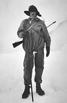 The original Abercrombie & Fitch was founded in 1892 in New York City by David T. Abercrombie as an outfitter for the elite outdoorsman. Ezra Fitch—a wealthy lawyer, real estate developer, and devoted Abercrombie customer—bought a significant stake in the business in 1900.[3] In 1904, it was incorporated and renamed "Abercrombie & Fitch Co." Fitch eventually bought out Abercrombie's share of the business, becoming its sole owner from 1907 to 1928.[3] The company was an elite outfitter of sporting and excursion goods, particularly noted for its expensive shotguns, fishing rods, fishing boats, and tents.[3] It outfitted Theodore Roosevelt's safari and Admiral Richard E. Byrd's expedition to Antarctica. Ernest Hemingway was also a regular customer; the gun with which he committed suicide in 1961 was purchased from Abercrombie and Fitch.[4] Following Hemingway's death, his wife placed several of his guns on consignment with the company.[5]
