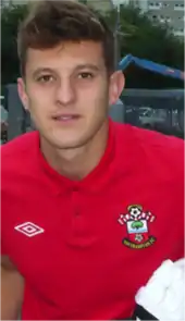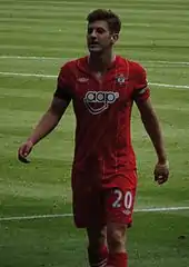 He then scored on the opening day of the 2011–12 season, a 3–1 victory over Leeds United at St Mary's Stadium which broke a 12-year hoodoo of Southampton not winning on the opening day and secured a record-breaking seventh consecutive league win.[23] He then scored twice in a 5–2 victory at Ipswich Town.[24] His 150th start for the club came in a 1–1 draw at south coast rivals Portsmouth.[25] His tenth goal of the season came in a 4–0 victory over Derby County.[26] He then scored two goals in a 2–0 victory over Barnsley.[27] He was nominated for the Southampton Player of the Year award but lost out to teammate Rickie Lambert. Along with Lambert and Kelvin Davis, he was one of three Southampton players named in the Championship PFA Team of the Year for the 2011–12 season.[28] He scored on the final day of the campaign to finish with 13 goals, 11 of which came in the league,[26] as Southampton clinched a second consecutive promotion.[29]