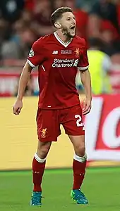 In August 2017, Lallana suffered a long-term injury during the Audi Cup final against Atlético Madrid, which would keep him out until mid-November.[63] His first appearance of the season was on 17 November, in Liverpool's 1–1 draw with Chelsea, coming on as an 89th minute substitute for Philippe Coutinho.[64] On 31 March, during a match against Crystal Palace, Lallana came on as a substitute in the 65th minute, but only several minutes after playing, he suffered another injury, which kept him out for "a number of weeks".[65][66] He returned to the squad on 13 May, on the final day of the Premier League season, coming on as a substitute for Sadio Mané in the 74th minute, playing against Brighton & Hove Albion. Liverpool won the match 4–0, which was enough to secure a top-four finish and a place in the 2018–19 Champions League, as finishing in fourth place now meant that clubs in the Premier League will automatically qualify for the group stage, rather than qualifying initially for the play-off round.[67][68]