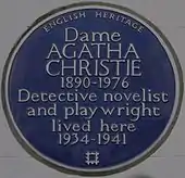She married Archibald Christie in December 1914, but the couple divorced in 1928.[3] After he was sent to the Western Front in the First World War, she worked with the Voluntary Aid Detachment and in the chemist dispensary, giving her a working background knowledge of medicines and poisons.[3] Christie's writing career began during the war, after she was challenged by her sister to write a detective story; she produced The Mysterious Affair at Styles, which was turned down by two publishers before being published in 1920.[3][6] Following the limited success of the novel, she continued to write and steadily built up a fan base. She went on to write over a hundred works, including further novels, short stories, plays, poetry, and two autobiographies. She also wrote six romantic novels under the pseudonym Mary Westmacott.[7]