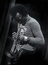 Unlike Davis' previous recordings, the cadenzas throughout Agharta were mostly played by Fortune and Cosey.[15] Fortune alternated between soprano and alto saxophones and the flute, performing with a "substance and structure" Gilmore believed was very much indebted to John Coltrane during his A Love Supreme (1965) period.[41] In his estimation of Fortune's solos on the album, Gilmore said the saxophonist "floats over formidable rhythmic density, taking long and graceful breaks that wing off into a private reverie".[41] Fortune performed his longest alto saxophone solo on "Right Off", which opened the record's second disc in a "propulsive" segment Gilmore said "flies by like a train ride in a dream, where scenes flash past the window in a fascinating and illusive dream".[42]