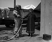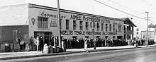 In June 1925, after an earthquake in Santa Barbara McPherson interrupted a radio broadcast to request food, blankets, clothing, and emergency supplies.[50] In 1928, after a dam failed and the ensuing flood left up to 600 dead, McPherson's church led the relief effort.[51] In 1933, an earthquake struck and devastated Long Beach. McPherson quickly arranged for volunteers offering blankets, coffee, and doughnuts.[52] McPherson persuaded fire and police departments to assist in distribution. Doctors, physicians, and dentists staffed her free clinic that trained nurses to treat children and the elderly. To prevent the power from being turned off to homes of overdue accounts during the winter, a cash reserve was set up with the utility company.[53][54]