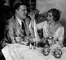 Allegations of love affairs[120] directed against McPherson started during the 1926 kidnapping trial. Suspected lovers generally denied involvement.[121] Alarmed by her style of dress and involvement with Hollywood, a Temple official[122] hired detectives in 1929 to shadow McPherson. The detectives found no evidence of affairs.[123] After McPherson's death, unsubstantiated allegations of affairs continued to emerge. Canadian journalist Gordon Sinclair claimed a 1934 affair in his autobiography.[124] Another claim by comedian Milton Berle alleged a brief affair with the evangelist. Berle asserted that he met McPherson in Los Angeles where both were doing a charity show. Another book by Berle published during McPherson's life did not claim an affair.[125] Biographer Matthew Sutton asserted that Berle's story of a crucifix[126] in McPherson's bedroom was inconsistent with the coolness of Pentecostal-Catholic relations during that era. Other contradictions in Milton Berle's story were noted as well. During that period, from publications, church and travel records, the evangelist's appearances and whereabouts could be traced almost every day, and there was no record of the charity show Berle alleged. McPherson had her own charities. Moreover, she was incapacitated with illness a full five months of that year, By 1931, McPherson kept herself chaperoned to guard against allegations."[127][128]