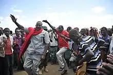 From mid-to-late 2011, and into 2012, al-Shabaab faced an increasing number of defections.[61] It was not the first such wave of defections: in particular, in late 2009, after the Ethiopian departure from Somalia, several leaders had defected to the Somali government, citing complaints about al-Shabaab's use of suicide attacks and executions;[78] its "false interpretations of Islam";[79] and its use of extortion and attitude towards foreign humanitarian aid.[80] Such defections were viewed as strategically important to al-Shabaab's adversaries, not only for their propaganda use but because former militants could provide intelligence about al-Shabaab's combat strategy.[81] However, according to AMISOM and the Somali government, the volume of defections in the period around 2012 was unprecedented, and indicated that al-Shabaab's cohesion and authority were deteriorating: in June 2012, the government said that around 500 al-Shabaab militants had already defected to it, and that more were doing so every day.[82] Al-Shabaab brutalities, which alienated local populations, were again cited as central in motivating defections.[83] On September 5 and September 22, 2012, two large contingents of al-Shabaab fighters – around 200 each time – surrendered to the government coalition in Afmadow and Garsale respectively.[81][84] Another wave of defections and desertions followed Godane's 2013 purges – Aweys, for example, fled the group in mid-2013.[75]