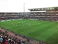 The first international match at Loro Boriçi Stadium was played on 29 March 2003 against Russia, with Albania winning 3–1.[17] In October 2014, Prime Minister of Albania, Edi Rama, promised the reconstruction of the stadium.[51] The stadium's construction started in May 2015 and finished in August 2016.[52] In 2016–17, the stadium served temporary as the home of Kosovo national team, due to stadiums in Mitrovica and Pristina were under renovation and did not meet UEFA standards.[53]