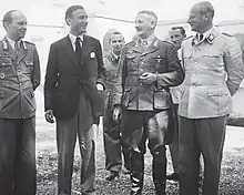 Promotion in the Luftwaffe was rapid; Kesselring was promoted to Generalmajor on 1 October 1934, and Generalleutnant on 1 April 1936.[16] Like other generals of Nazi Germany, he received personal monthly payments from Adolf Hitler, in Kesselring's case 6,000 ℛ︁ℳ︁, a considerable sum at the time.[17][Notes 2]