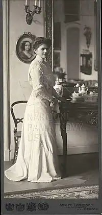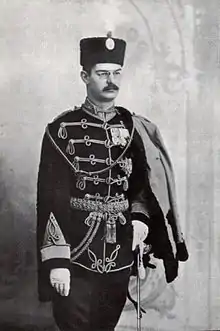 The general impression was that, as much as the senate was packed with men devoted to the royal couple and the government obtained a large majority at the general elections, King Alexander would not hesitate any longer to proclaim Queen Draga's brother as the heir presumptive to the throne.[4] In spite of this, it had been agreed with the Serbian government that Prince Mirko of Montenegro, who was married to Natalija Konstantinović, the granddaughter of Princess Anka Obrenović, an aunt of King Milan, would be proclaimed heir presumptive in the event that the marriage of King Alexander and Queen Draga was childless.[9]