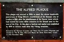 The Viking army withdrew from Reading in the autumn of 871 to take up winter quarters in Mercian London. Although not mentioned by Asser or by the Anglo-Saxon Chronicle, Alfred probably paid the Vikings silver to leave, much as the Mercians were to do in the following year.[39] Hoards dating to the Viking occupation of London in 871/872 have been excavated at Croydon, Gravesend and Waterloo Bridge. These finds hint at the cost involved in making peace with the Vikings. For the next five years, the Danes occupied other parts of England.[40]
