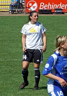 Following the WPS season, Krieger returned to Germany to play with FFC Frankfurt for the 2009–10 season, starting with a match on September 20, 2009 against VfL Wolfsburg.[34] She made 15 appearances in the regular season to help FFC Frankfurt finish third in the Bundesliga.[34][35] Due to their third-place finish, Frankfurt did not qualify for UEFA Champions League.[35] Krieger also appeared during two matches of the Frauen DFB–Pokal on November 14 and December 19.[34] In February 2010, Krieger's contract with Frankfurt was extended for an additional year until June 2011.[7]