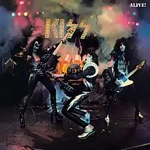 Alive! is the fourth album overall, and the first live album, by American hard rock band Kiss. It is considered to be their breakthrough, and a landmark for live albums. Released on September 10, 1975, the double-album contains live versions of selected tracks from their first three studio albums, Kiss, Hotter Than Hell and Dressed to Kill. It was recorded at concerts in Detroit, Michigan; Cleveland, Ohio; Wildwood, New Jersey; and Davenport, Iowa on May 16, June 21, July 20 and 23, 1975.[2]