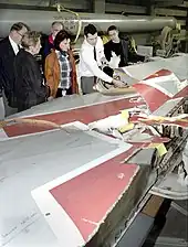 In May 2002, a Canadian government memorandum repeated the claims suggesting that Jdey had a role in the crash,[16][17] while conceding that the reliability of the source of that information – Khalid Sheikh Mohammed's lieutenant – was unknown.[16][17] According to the memo, Jdey – a naturalized Canadian citizen – was to use his Canadian passport to board the flight.[17] While American Airlines' passenger manifest did indicate citizens boarding with passports from the United States, the Dominican Republic, Taiwan, France,[lower-alpha 4] Haiti, and Israel, no passengers boarded using a Canadian passport.[18][17] According to NTSB spokesman Ted Lopatkiewicz, the weight of the memo's veracity was questioned, as no evidence of a terrorist traveling on board was found. The evidence suggested that the aircraft was brought down after a piece of the tail assembly, "the vertical fin, came off," while it did not indicate "any kind of event in the cabin."[16]