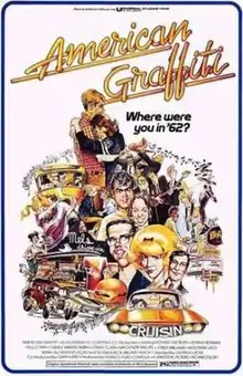During the production of THX 1138 (1971), producer Francis Ford Coppola challenged co-writer/director George Lucas to write a script that would appeal to mainstream audiences.[2] Lucas embraced the idea, using his early 1960s teenage experiences cruising in Modesto, California. "Cruising was gone, and I felt compelled to document the whole experience and what my generation used as a way of meeting girls," Lucas explained.[2] As he developed the story in his mind, Lucas included his fascination with Wolfman Jack. Lucas had considered doing a documentary about the Wolfman when he attended the USC School of Cinematic Arts, but he ultimately dropped the idea.[3]