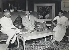 Mikoyan was defiantly proud of his Armenian identity, and in a 1959 meeting with U.S. Vice President Richard Nixon in Washington, he even raised the issue of the treatment of the Armenians in Turkey.[67] He greatly enjoyed meeting fellow Armenians abroad, including former U.S. ambassador Edward Djerejian.[68] However, in post-Soviet Armenia, Mikoyan's legacy is contentious.[69] His critics point to his participation in the 1930s purges in Armenia on the orders of Stalin.[69] His supporters argue that he was a major figure on the global political stage and usually point to his role in defusing the Cuban missile crisis.[69] Others emphasize Mikoyan's important role in de-Stalinization in Armenia, including his March 1954 speech in Yerevan and his significant involvement in rehabilitations.[18] Mikoyan's contributions to the development of the Soviet Armenian state included support for major economic projects, such as the Arpa–Sevan canal.[70] As a Supreme Soviet Deputy for Yerevan, he maintained close ties with Soviet Armenian leaders like Yakov Zarobyan and Anton Kochinyan and regularly consulted with them on Armenian affairs.[70] Although limited in his ability to assist Armenian leaders on Nagorno-Karabakh, he was sympathetic to Armenian concerns,[70][71] and his son Sergo was later a prominent advocate for the Karabakh movement.[72] Despite his break with the Armenian Church, Mikoyan maintained good relations with Catholicos Vazgen I.[73] He was also a supporter of composer Aram Khachaturian,[74] and counted Marshal Ivan Bagramyan among his personal friends.[75]