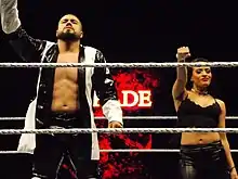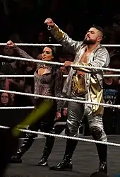 On November 19, 2015, Andrade signed a developmental contract with WWE.[84] He later reported to the WWE Performance Center to begin his WWE career, focusing initially on improving his English language skills with the help of Sarah Stock, a WWE trainer who worked for CMLL for almost a decade.[85] He made his WWE in-ring debut at an NXT house show in Tampa, Florida on January 8, 2016, wrestling under the name "Manny Andrade" and defeating Riddick Moss.[2] He made his NXT TakeOver debut at NXT TakeOver: Dallas on April 1, where he defeated Christopher Girard during a dark match.[86]
