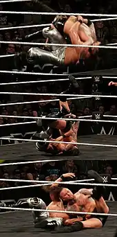 From 2007 through 2014, Andrade portrayed the masked character "La Sombra" as a heroic, young, high-flying wrestler who used a lot of lucha libre moves, especially dives off the top rope and occasionally out of the ring to the floor.[179] At the time, he often used a split-legged corkscrew senton dive off the top rope to finish his matches.[179]