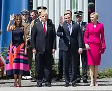 U.S. President Donald Trump praised Duda, saying: "He's doing a terrific job."[68][69] In September 2019, Trump and Duda agreed to send 1,000 U.S. troops to Poland.[70]