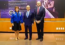 Before and after her flight assignments Fisher performed many public appearances per year; those included both official duties, such as when she spoke to visitors at the September 22, 2012, open house of NASA's Langley Research Center,[65] and semi-official duties, such as when she was a special guest at the 99th Indianapolis 500 on May 24, 2015.[66] Fisher and Bill appeared together with their daughter Kristin on an August 1983 segment of Good Morning America.[67] The September 1982 issue of The Saturday Evening Post featured a cover photo of Fisher.[68] She was also photographed for the back cover of Redbook magazine.[69]