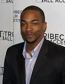 Mackie portrayed late American rapper Tupac Shakur in the 2009 film Notorious. He had previously portrayed Shakur in the play Up Against the Wind in 2001, while attending Juilliard. In 2009, he appeared in The Hurt Locker. Mackie also narrated The Best That Never Was, a documentary about football player Marcus Dupree. He appeared in the 2011 film The Adjustment Bureau as Harry Mitchell, a sympathetic member of a shadowy supernatural group that controls human destiny. Mackie co-starred, as Sam Wilson / Falcon, in the Marvel Studios sequel Captain America: The Winter Soldier (2014).[18][19] He reprised the role in multiple Marvel Cinematic Universe films over the next several years, including 2015's Avengers: Age of Ultron[20] and Ant-Man, 2016's Captain America: Civil War, 2018's Avengers: Infinity War, and 2019's Avengers: Endgame.[21]