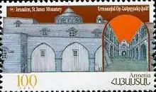 Philip Marsden wrote that the survival of Armenians in Jerusalem–"most intense of all cities"—proves their extraordinary resilience.[23] Armenian churches were constructed during that period, including the St. James Monastery.[24] The latter was last expanded in the mid-12th century.[25] An Armenian scriptorium was in operation by the mid-5th century.[26] A secular community composed of merchants and artisans was established in the 6th century in the Zion Quarter, where an Armenian street existed (Ruda Armeniorum).[19][27]