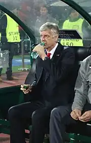 Wenger's methods had the desired effect – Nagoya won 17 of their following 27 games to finish runners-up in 1995.[81] He shortly received the J. League Manager of the Year award for 1995, while Stojković claimed the player's honour.[82] In January 1996, Wenger guided the club to their first piece of silverware as Nagoya defeated Sanfrecce Hiroshima to win the Emperor's Cup.[81] Two months later they triumphed in the Super Cup, beating Yokohama Marinos 2–0.[83] The success bolstered Nagoya's status in Japanese football, as well as Wenger's reputation; he was somewhat startled by the praise and idolisation that came his way.[83] Midway through the 1996 league season, Wenger's former club Strasbourg enquired about the possibility of him returning to manage them.[84] He turned down the offer as he was earlier approached by Arsenal.[84] David Dein had remained in contact with Wenger after their first meeting, and frequently sent him video tapes of matches to garner his opinions; "He was my personal pundit," the vice-chairman recalled.[85] The Arsenal board rebuffed Dein's suggestion to appoint Wenger as early as 1995, but concerns over George Graham's successor Bruce Rioch meant they were more open-minded about hiring him since his stint in Japan.[86]