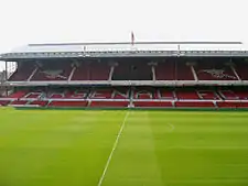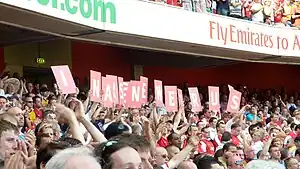 In the summer of 2006, Wenger oversaw Arsenal's relocation to the Emirates Stadium.[194] During the construction phase, he described the move as "vital" to the club's financial future and believed Arsenal were better able to attract the best players.[195] Moving to the new stadium, however, presented several problems in the short term, as the club prioritised financing it over the team.[196] Wenger sold some of his experienced players such as Campbell, Lauren and Pires, sanctioned Cole's move to Chelsea in part exchange for defender William Gallas,[197] and integrated young players like Theo Walcott and Alex Song into the first team. His youthful team contested the League Cup final in February 2007 and were the youngest to play in a major English cup final, averaging 21 years.[198] They ultimately came up short against Chelsea, who won the match 2–1.[199] Arsenal finished fourth in the 2006–07 league season;[200] Wenger had ruled out their title chances following defeat to Bolton in November 2006.[201] The team's lack of directness and efficiency of possession was a familiar theme during the campaign;[202] Guardian journalist Daniel Taylor observed two matches into the league season: "The most watchable side are frequently the most frustrating. Arsenal are wonderfully incisive yet infuriatingly blunt."[203]