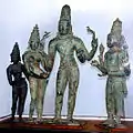 Shadow puppets are an ancient part of India's culture and art, particularly regionally as the keelu bomme and Tholu bommalata of Andhra Pradesh, the Togalu gombeyaata in Karnataka, the charma bahuli natya in Maharashtra, the Ravana chhaya in Odisha, the Tholpavakoothu in Kerala and the thol bommalatta in Tamil Nadu. Shadow puppet play is also found in pictorial traditions in India, such as temple mural painting, loose-leaf folio paintings, and the narrative paintings.[11] Dance forms such as the Chhau of Odisha literally mean "shadow".[12] The shadow theatre dance drama theatre are usually performed on platform stages attached to Hindu temples, and in some regions these are called Koothu Madams or Koothambalams.[13] In many regions, the puppet drama play is performed by itinerant artist families on temporary stages during major temple festivals.[14] Legends from the Hindu epics Ramayana and the Mahabharata dominate their repertoire.[14] However, the details and the stories vary regionally.[15][16]
