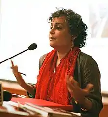 Suzanna Arundhati Roy (born 24 November 1961)[1] is an Indian author best known for her novel The God of Small Things (1997), which won the Booker Prize for Fiction in 1997 and became the best-selling book by a non-expatriate Indian author.[1] She is also a political activist involved in human rights and environmental causes.[6]