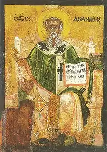 It has since been widely accepted by modern scholars that the creed was not authored by Athanasius,[6] that it was not originally called a creed at all[7] and that Athanasius's name was not originally attached to it.[8] Athanasius's name seems to have become attached to the creed as a sign of its strong declaration of Trinitarian faith. The reasoning for rejecting Athanasius as the author usually relies on a combination of the following: