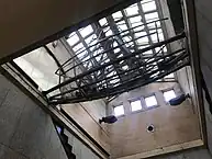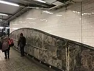 As part of the project, contractors built or rebuilt fifteen stairs.[139][143] The MTA also re-tiled the walls and floors, upgraded the station's lights and the public address system, and installed new trackbeds for local and express trains entering the IRT station.[143] The passageway between the Atlantic Avenue and Pacific Street portions of the complex was widened from 15 to 42 feet (4.6 to 12.8 m).[143] An escalator was replaced at Hanson Place, and a new station entrance was added there.[144] The station house was also temporarily relocated for restoration, then moved back to its original site.[145]: 103 [146] To approximate the original look of the station house, contractors ordered bricks from Minnesota for $4 apiece.[139] In 2004, the Brighton and Eastern Parkway lines' platforms were added to the NRHP.[147] Additionally, eight elevators were installed throughout the station complex[143] at a cost of $77.9 million.[148] When the elevators were completed, disabled riders could only enter one car of IRT express trains because part of that platform was too narrow. The entire IRT express platform became accessible in 2007 after the MTA spent $360,000 to relocate two stair railings.[148]
