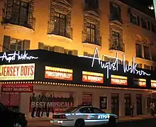 The musical Groundhog Day opened at the theater in April 2017 and stayed until that September.[304][305] It was followed at the end of the year by a concert, Home for the Holidays with Candice Glover, Josh Kaufman, Bianca Ryan, Peter and Evynne Hollens, and Danny Aiello.[306][307] The musical Mean Girls opened at the August Wilson in April 2018.[308][309] Mean Girls played its final performance on March 11, 2020, the night before the Broadway industry was shuttered due to the COVID-19 pandemic.[310] During the August Wilson's closure, its marquee was typically dimmed to memorialize pandemic victims. The marquee was re-lit in November 2020 to commemorate a longtime Jujamcyn stagehand killed in an accident at the Winter Garden Theatre.[311][312] Mean Girls was officially canceled in January 2021, while the theater was still closed.[310][313]